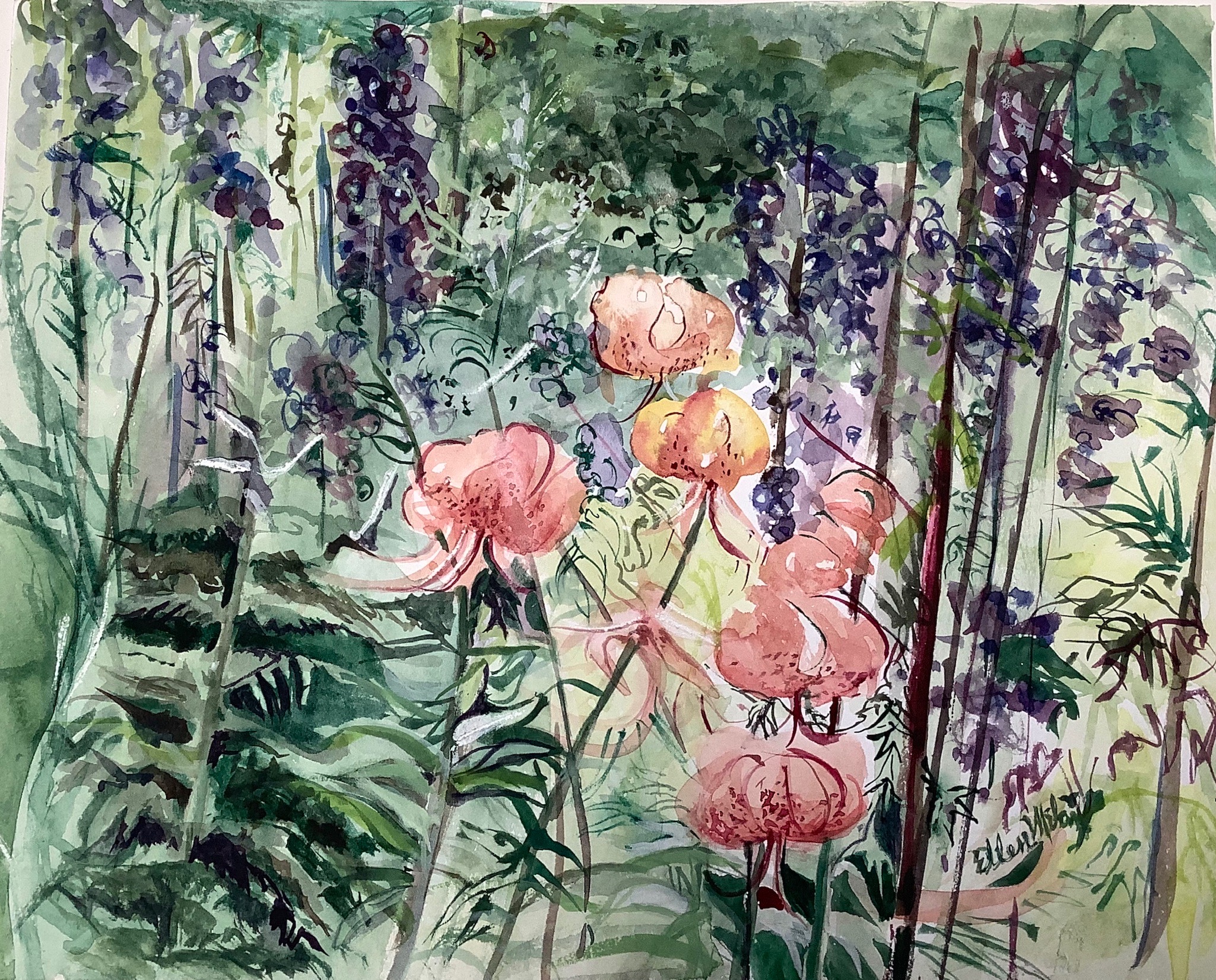 “Tiger Lillies” watercolor 10.7 x 14”